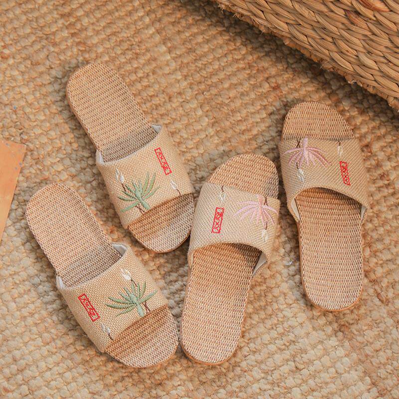 26民族风新款亚麻拖鞋女夏季室内厚底情侣防滑透气木地板春秋四季