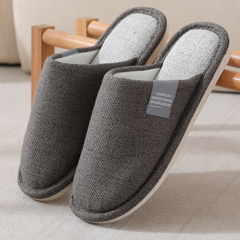 男士拖鞋室内家居棉麻布秋冬四季防滑吸汗冬季情侣亚麻地板拖无声