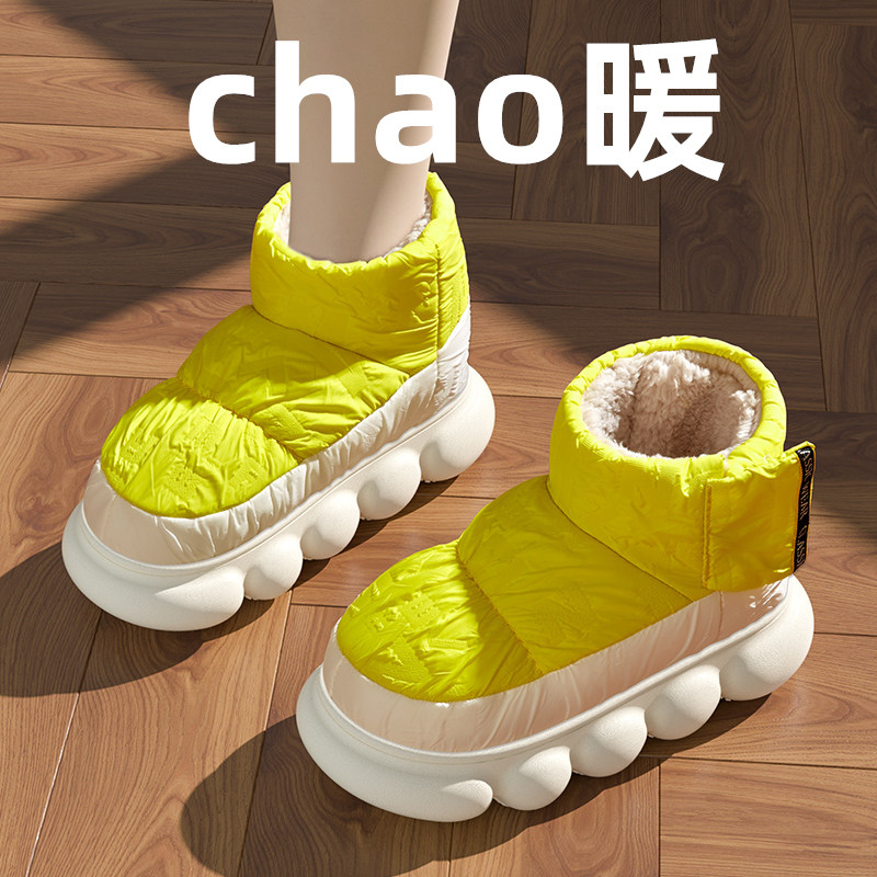 高包跟棉拖鞋女冬季保p暖防水厚底高帮居家外穿用可爱时尚棉鞋男