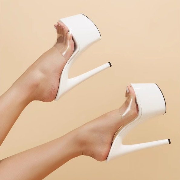 欧美钢管舞鞋模特时装走秀鞋细跟凉拖鞋15CM恨天超高跟女拖鞋婚鞋