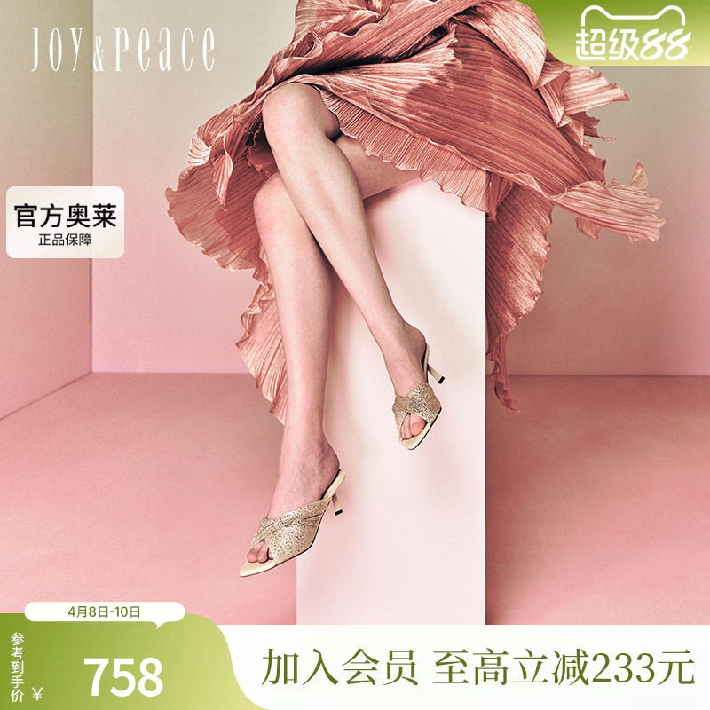 真美诗灿若星河2025夏季优雅水钻网纱一字拖尖头高跟拖鞋YXZ03BT5