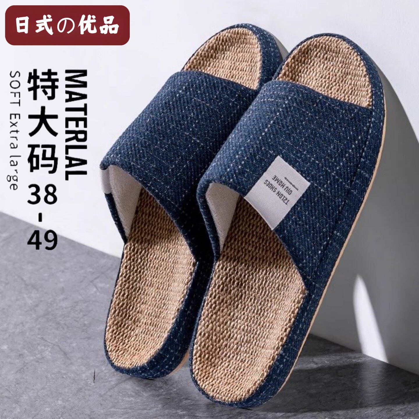日本大码亚麻拖鞋男款夏季室内家居静音办公室居家用防臭棉麻布男