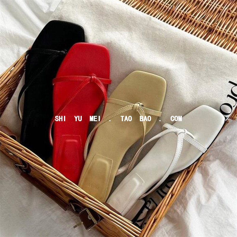 饰与美韩国东大门夏季新款露趾低跟简约细带小众红色外穿凉拖鞋女