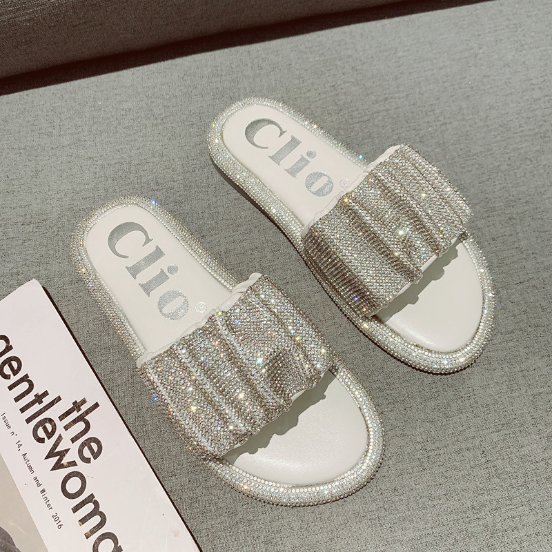 拖鞋女夏外穿软底2026年新款百搭软底闪闪水钻一字拖女平底凉拖鞋