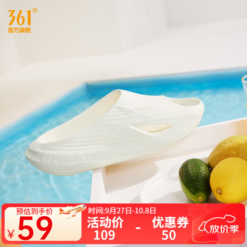 361°361度【BIG3 】运动拖鞋男春夏新款家居户外凉拖鞋厚底沙滩软底拖 羽毛白 41