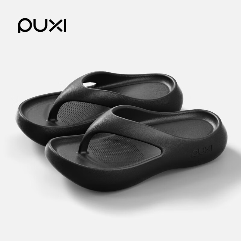 朴西新款夏季人字拖女厚底外穿夹脚拖鞋海边沙滩凉拖鞋女士防滑防臭 珍珠黑 37-38