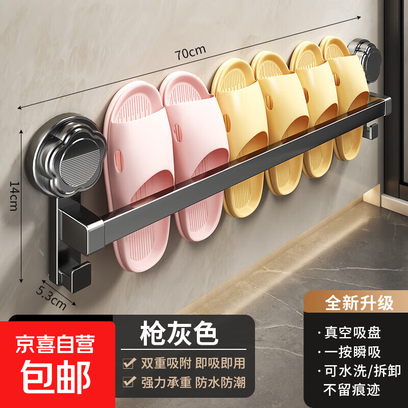 浴室吸盘拖鞋架免打孔卫生间置物架鞋子收纳神器厕所拖鞋沥水挂架 枪灰-吸盘拖鞋架:【三人款70CM】