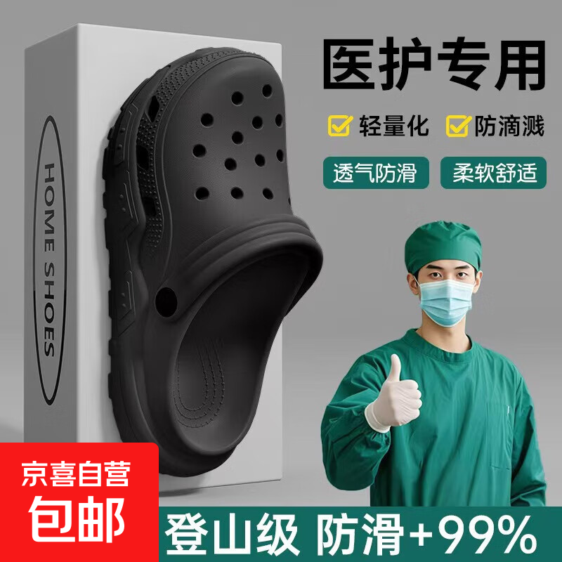 手术室室内洞洞鞋厚底女医护士凉拖鞋eva透气防滑外穿2025新款男 黑色 42-43