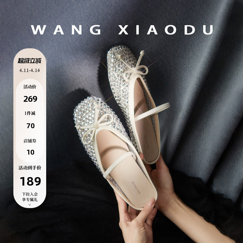 原创【王小毒】星光织梦●3cm内增高网面包方头凉拖女亮钻半拖鞋