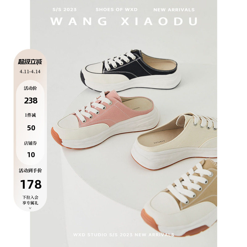 【王小毒】北海道②●4.3cm增高帆布包头半拖鞋休闲厚底小白鞋女