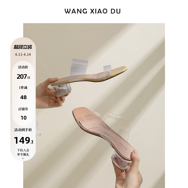 【王小毒】许愿水晶●高跟拖鞋女夏外穿新款一字带透明凉拖女粗跟