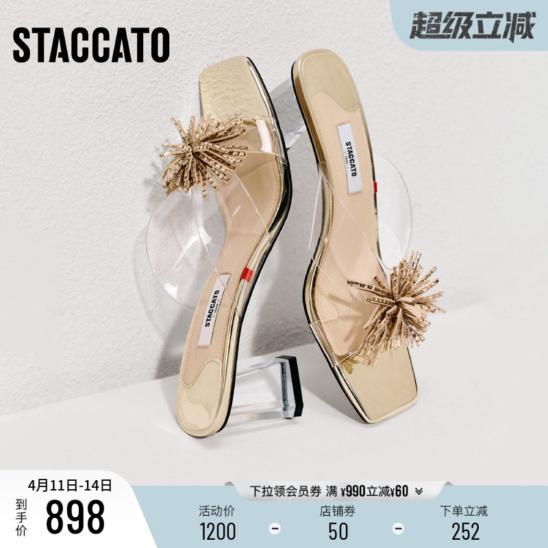 思加图2026新款水晶烟花仙女鞋粗跟凉拖鞋外穿凉鞋女鞋子EC403BT6