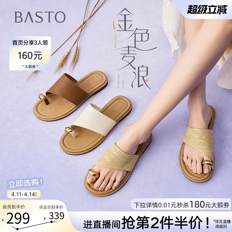 【孙乐言同款】百思图金色麦浪26夏新款度假外穿厚底沙滩凉拖鞋女