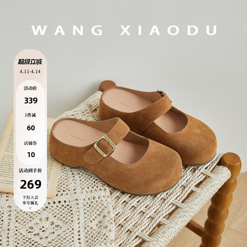 原创【王小毒】日光浮岛●内增高5cm~绒面包头拖鞋女复古勃肯半拖