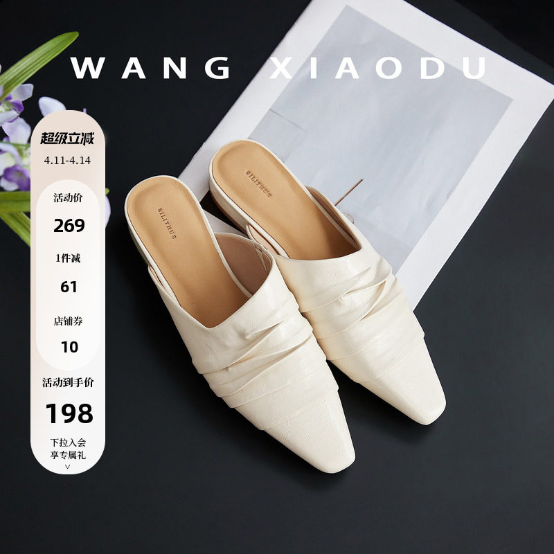 【王小毒】云朵可颂●粗跟穆勒拖鞋女复古外穿褶皱尖头包头拖鞋