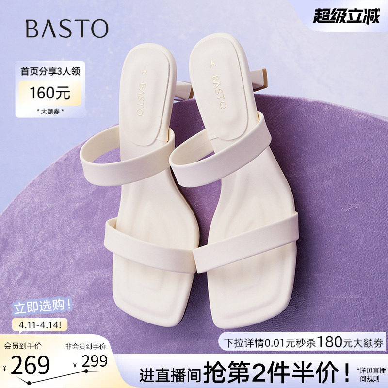 百思图夏季商场新款时尚通勤一字拖细高跟外穿女拖鞋B5297BT5