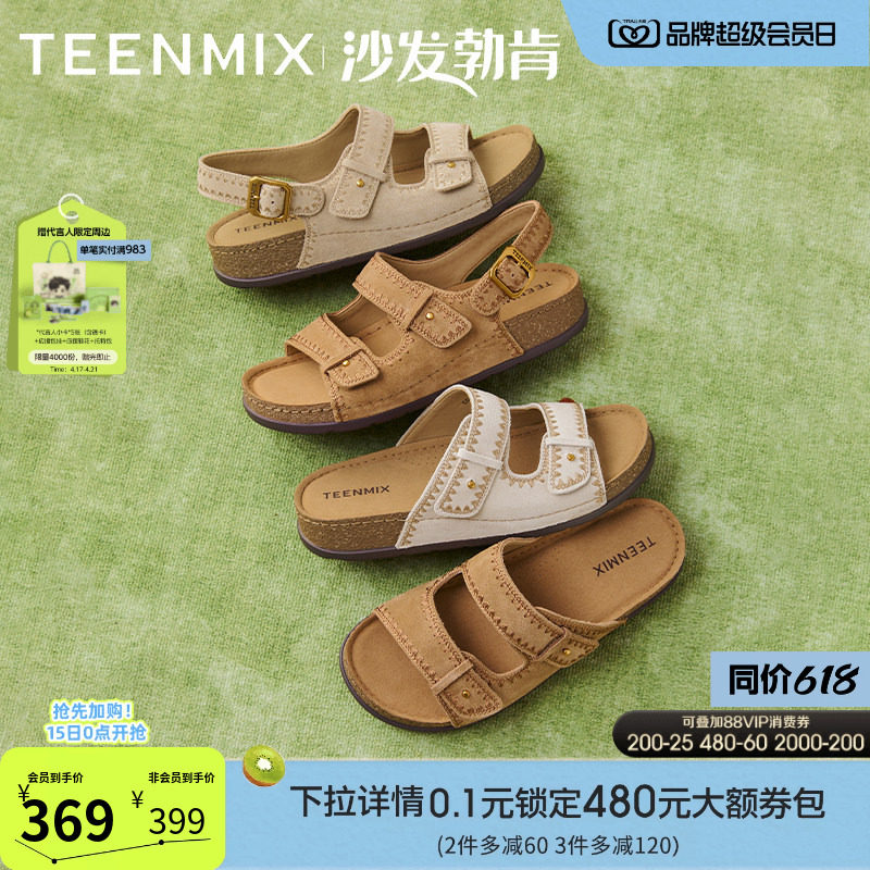 天美意沙发勃肯复古厚底拖鞋女外穿软底沙滩休闲凉鞋夏季新款