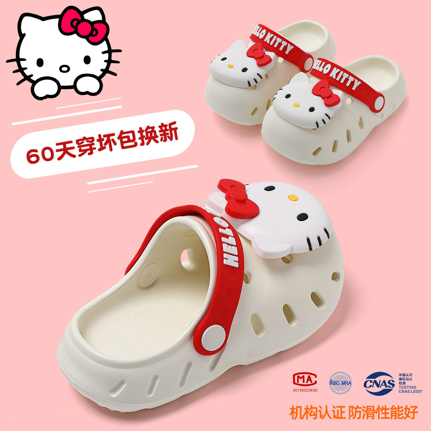 红豆HelloKitty儿童拖鞋女孩夏季外穿2026新款防滑女童包头洞洞鞋
