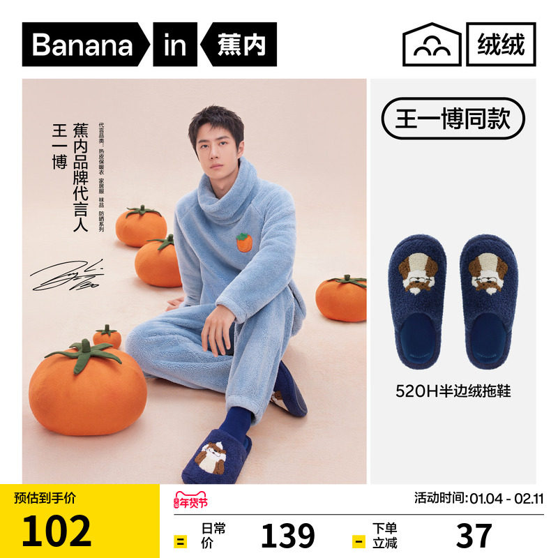 【王一博同款】蕉内绒绒520H男家居拖鞋冬季防滑保暖棉拖鞋女士