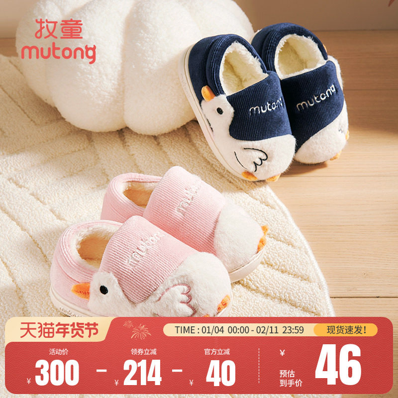 牧童儿童拖鞋加绒保暖宝宝室内家居鞋女童软底冬季男童卡通棉拖鞋