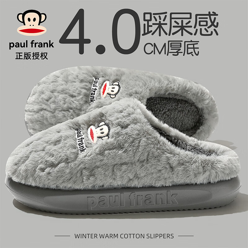 大嘴猴2025冬季新款棉拖鞋男士毛毛绒保暖居家用防滑情侣棉拖女款 灰色【正品保障】 42-43 【标准码】