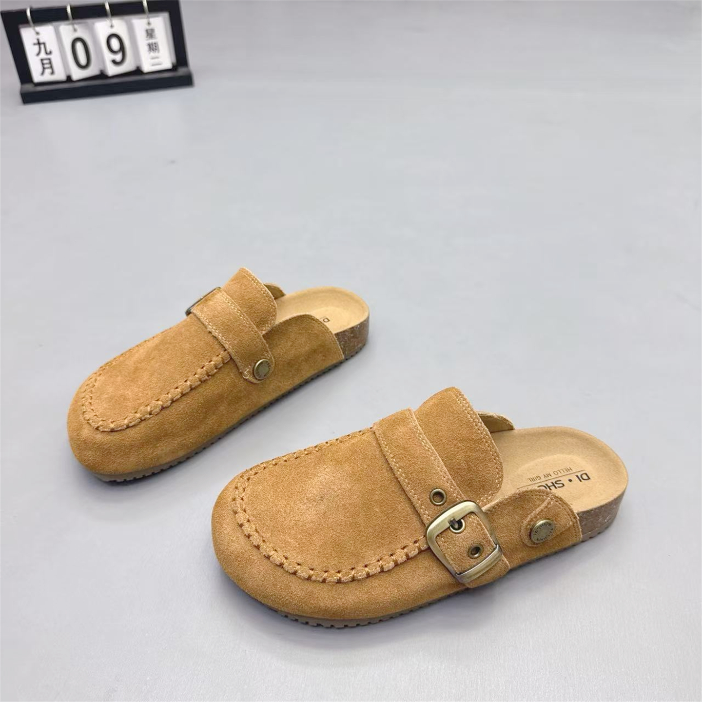真皮女鞋2025秋新款法式厚底包头半拖鞋外穿皮带扣博肯拖鞋袋鼠鞋