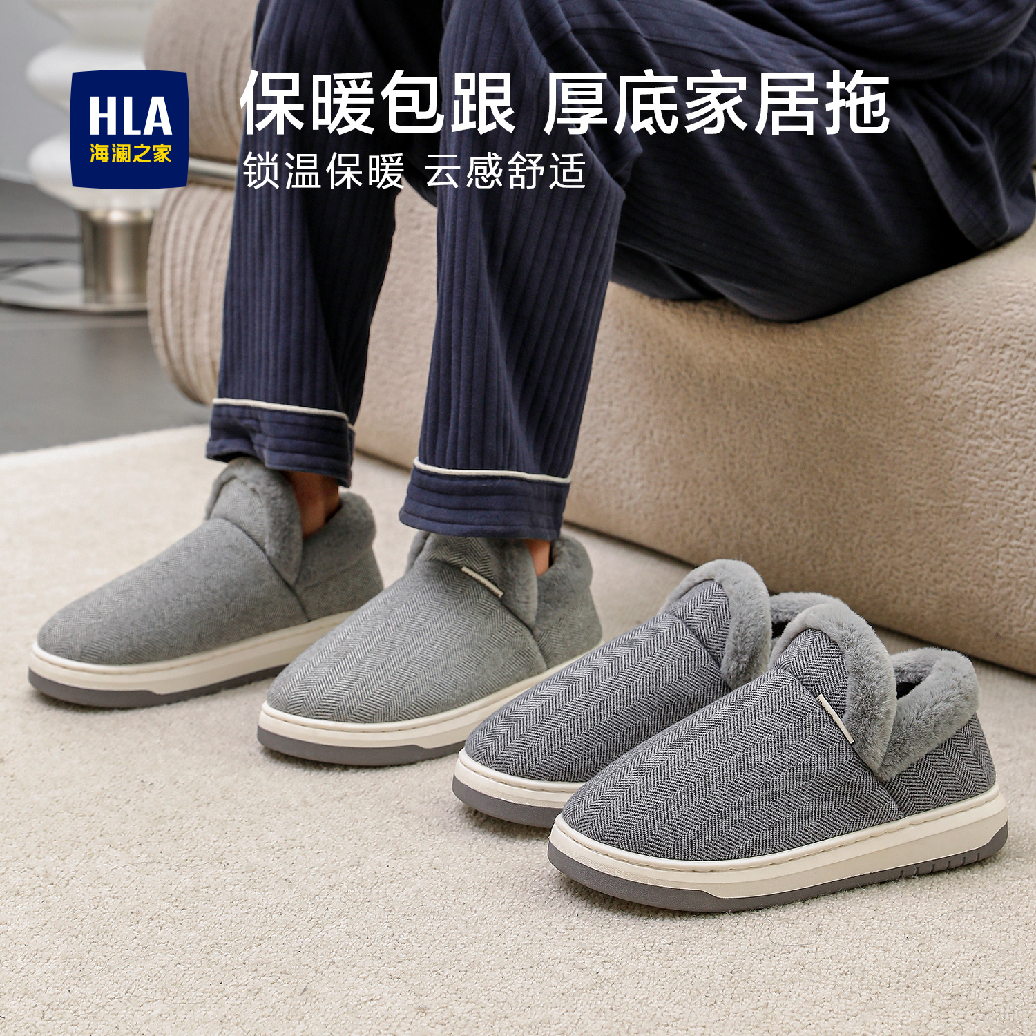 海澜之家棉拖鞋棉鞋加绒男士保暖拖鞋包跟家用季室内家居厚底秋冬