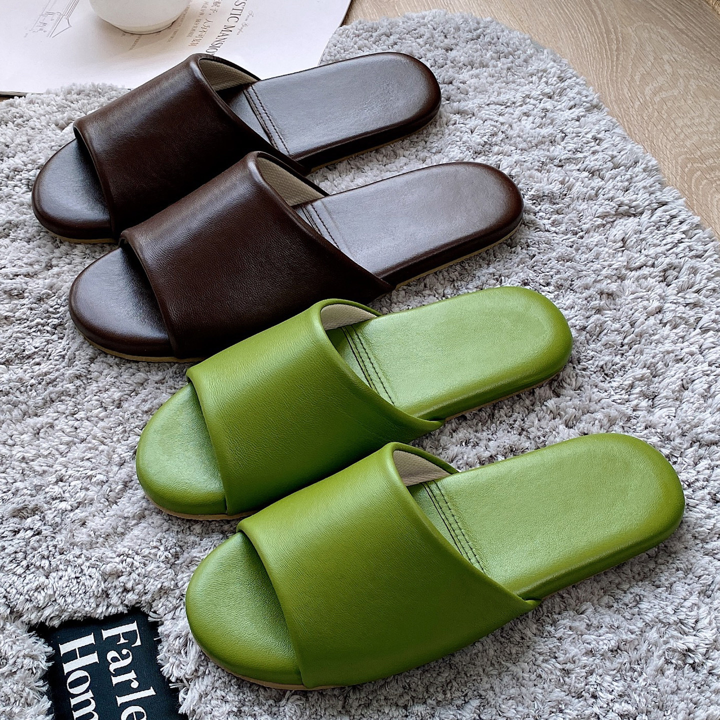 五星级酒店羊皮拖鞋男女士室内居家情侣防滑不臭脚春秋软底日式