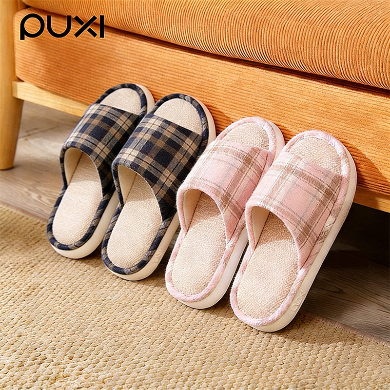 朴西2026新款方格亚麻拖鞋女四季透气防脚汗室内静音情侣亚麻拖男