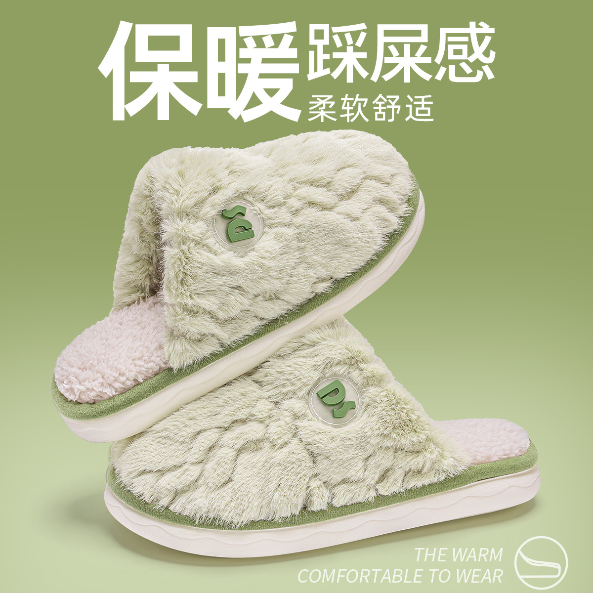 朴西冬季新款厚底保暖棉拖鞋女加绒居家防滑静音不沾毛情侣棉拖男