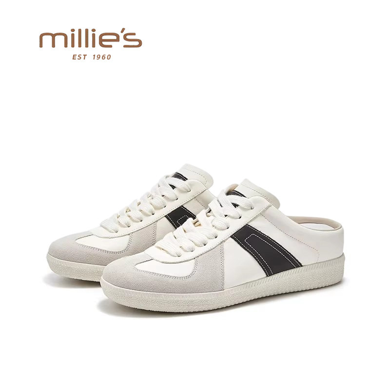 MILLIE'S/妙丽复古德训鞋女2026春季系带包头拖鞋平底休闲小白鞋