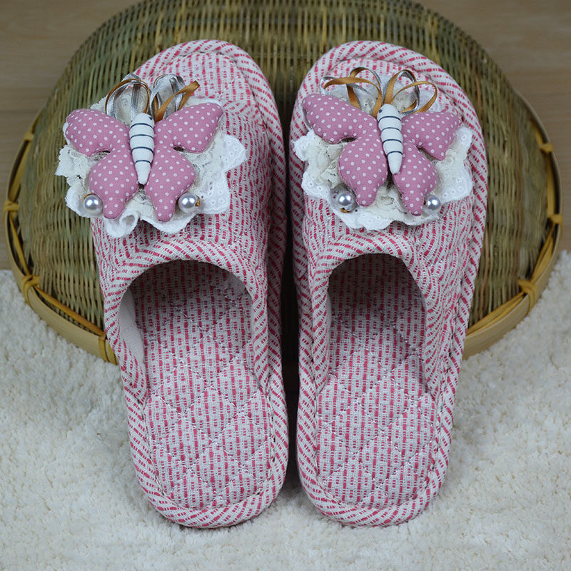 雅格布艺拖鞋牛筋底防滑女款可爱无声春秋冬居家纯棉布室内拖鞋
