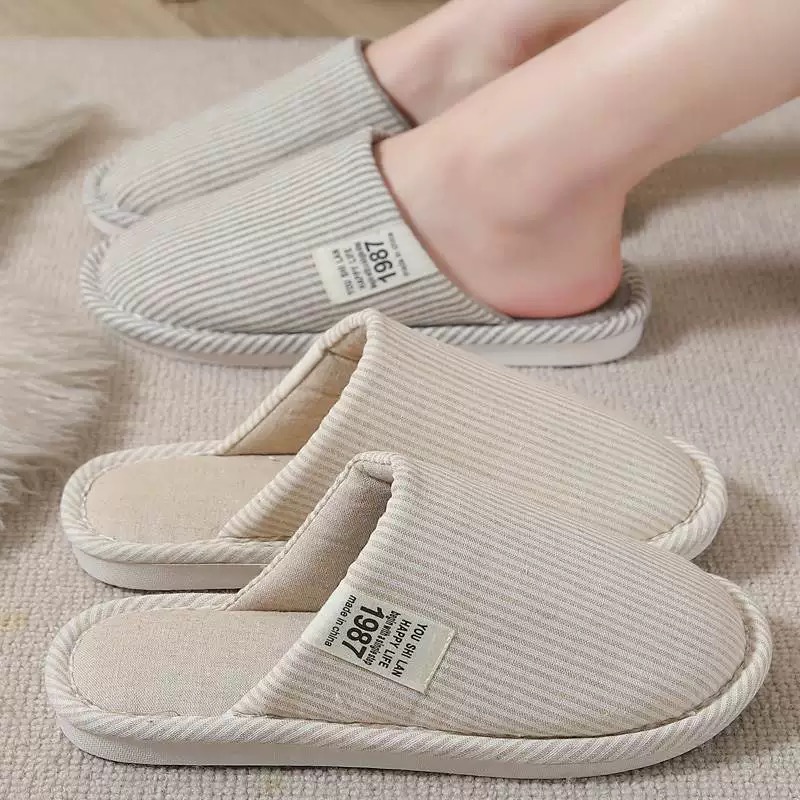 日式无声静音拖鞋男女款室内居家防滑四季木地板软底棉拖鞋秋冬季