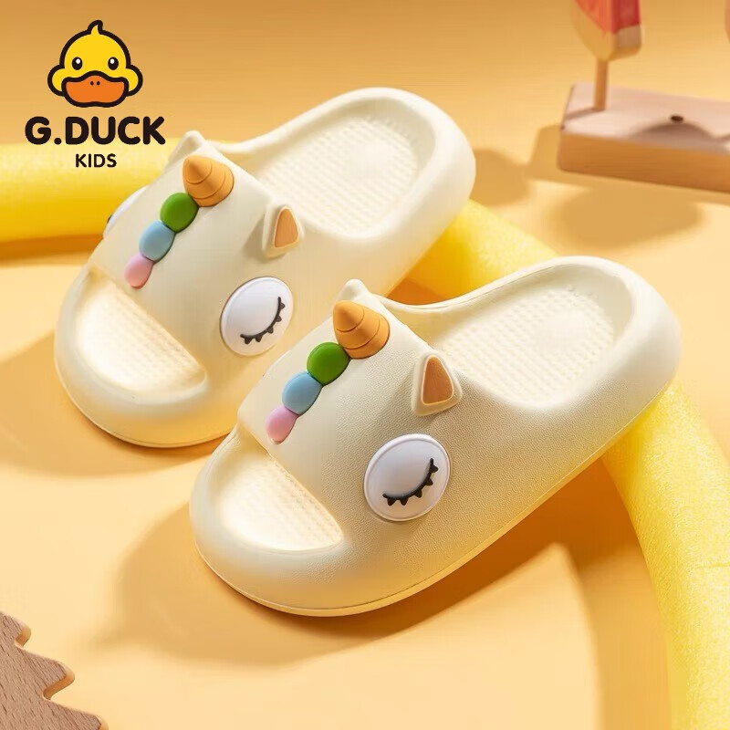 G.DUCKKIDS小黄鸭儿童拖鞋夏季卡通厚底踩屎感软底浴室洗澡防滑女童凉拖鞋 米黄-2024年上新 24 25(适合脚长15.5cm)