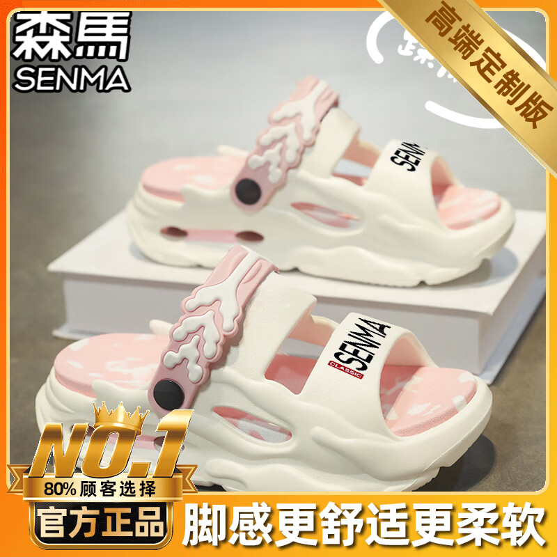 森馬拖鞋女夏季2025新款外穿简约厚底踩屎感一字拖情侣户外高颜值凉鞋 粉色 (旗舰款) 34-35