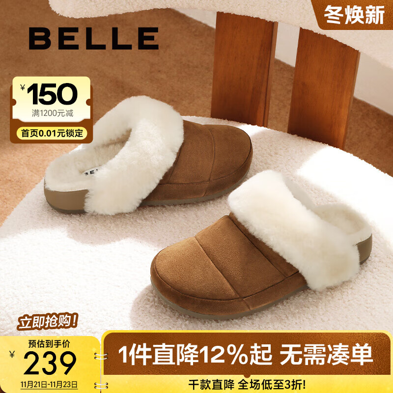 百丽(Belle)休闲舒适勃肯鞋女居家保暖拖鞋B2292DH4 黄棕色 36 (230mm)