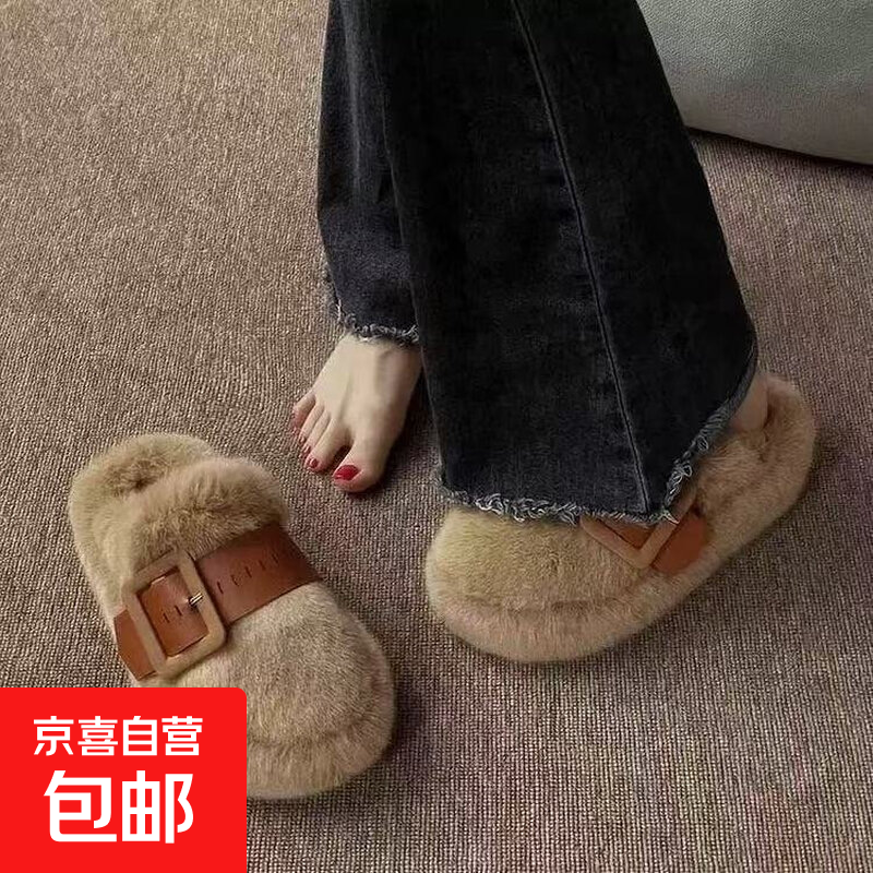 包头毛毛拖鞋女秋冬外穿2025新款网红厚底松糕家用毛绒棉拖鞋 深棕色 37