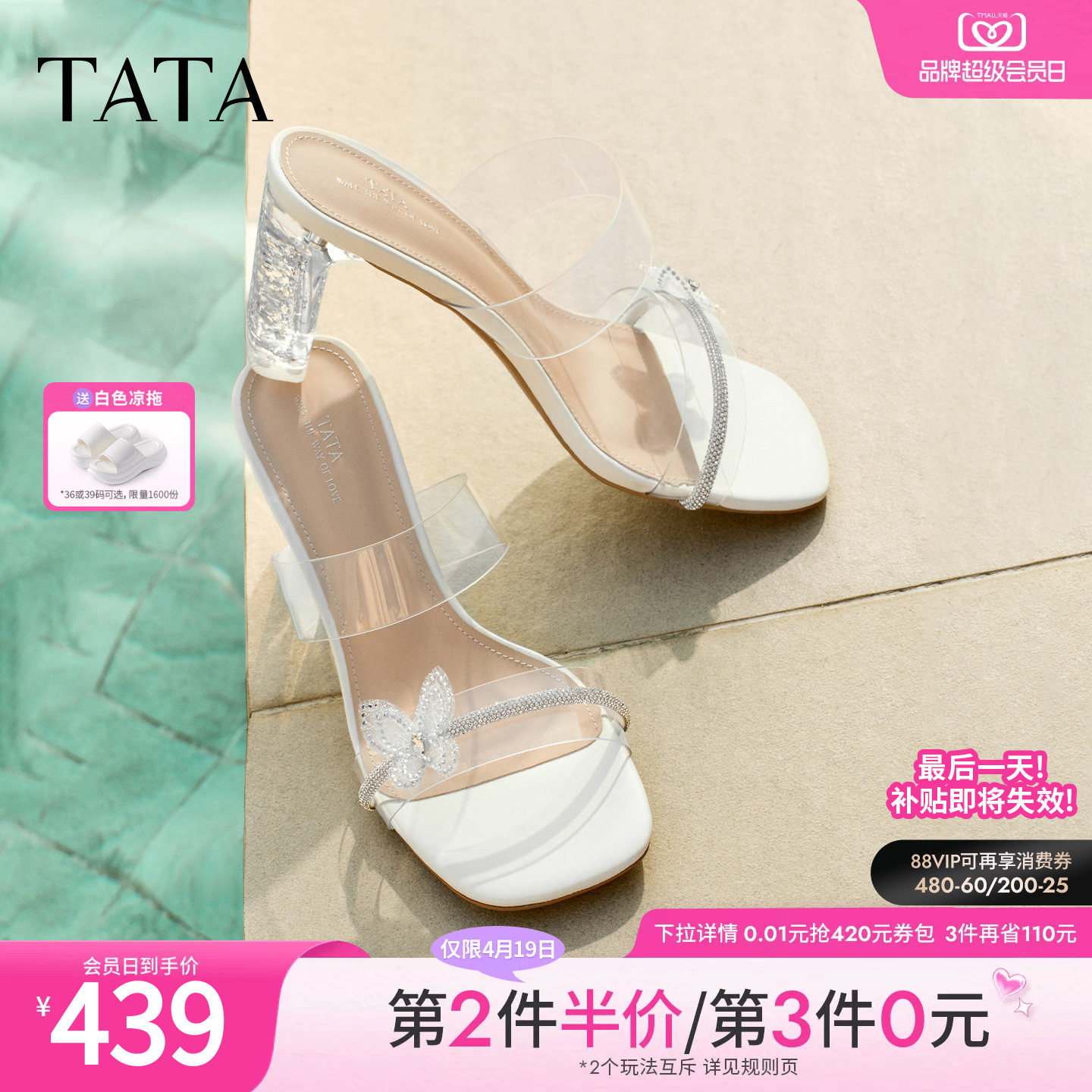 TATA他她女鞋2026夏季新款一字拖简约百搭拖鞋高跟凉鞋XEK06BT6