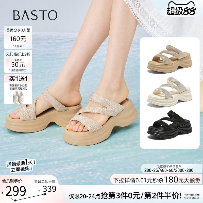 百思图2026夏季新款松糕厚底增高凉拖鞋休闲外穿女拖鞋BP579BT6