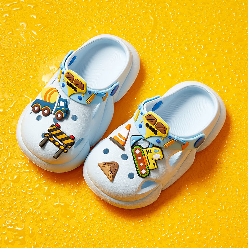 挖掘机儿童洞洞鞋卡通室内外防滑小孩铲车可爱沙滩鞋凉拖鞋