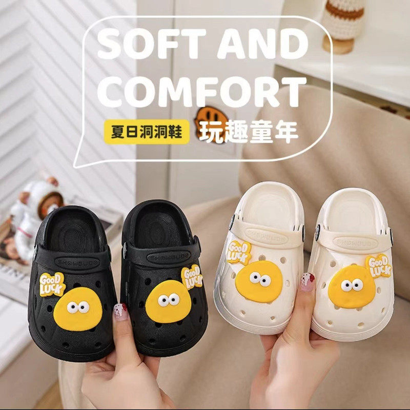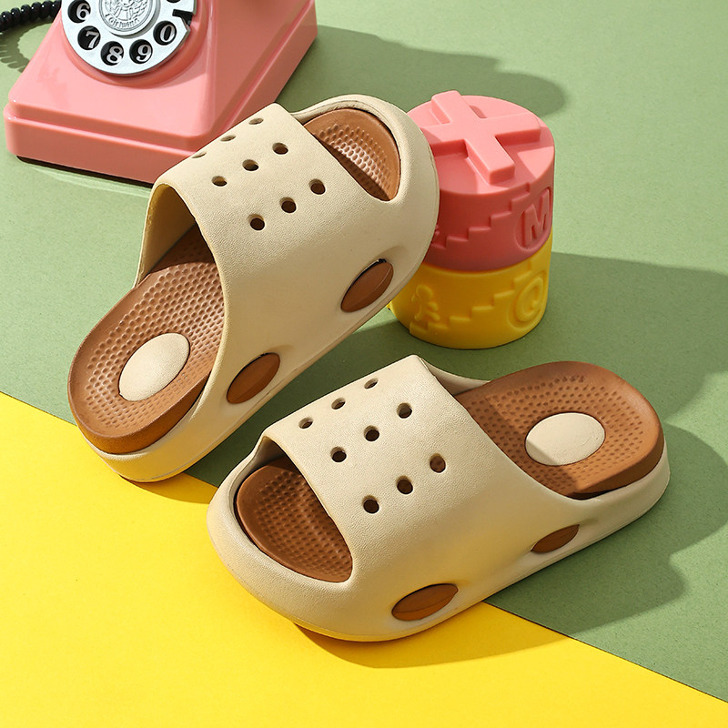 可爱奶酪儿童夏季厚底防滑包头洞洞鞋家居男女童拖鞋