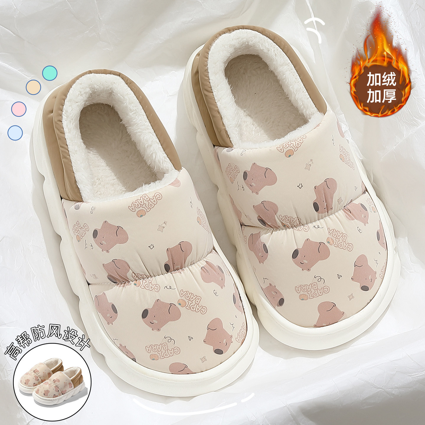 朴西踩屎感棉拖鞋女款防水冬季室内居家加绒保暖静音简约情侣棉拖鞋男 卡其色 【盲选不会错】 44-45 适合(43-44)