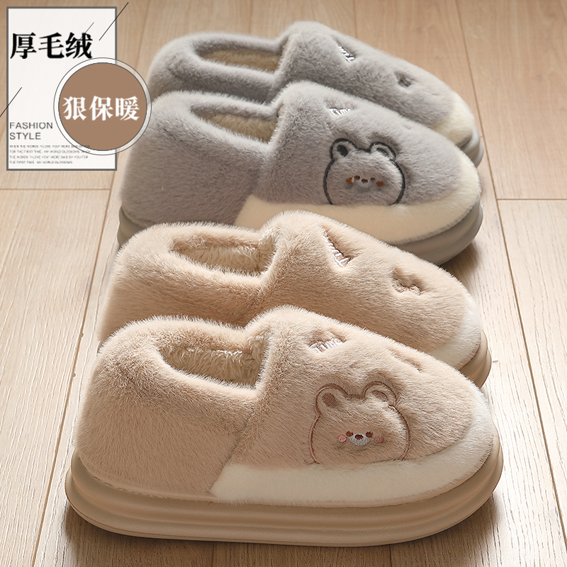 新款女生棉拖鞋厚底冬天加绒保暖女可外穿居家鞋可爱舒适防滑底