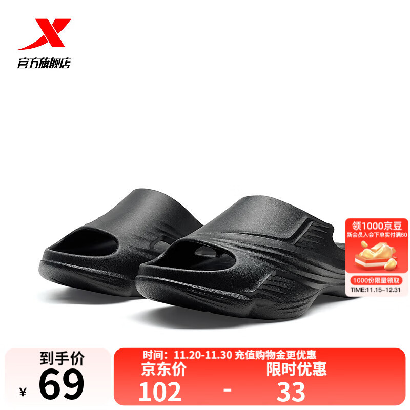 特步门店同款拖鞋2025夏男鞋运动拖鞋外穿旅行托鞋凉鞋975237691661 黑 42