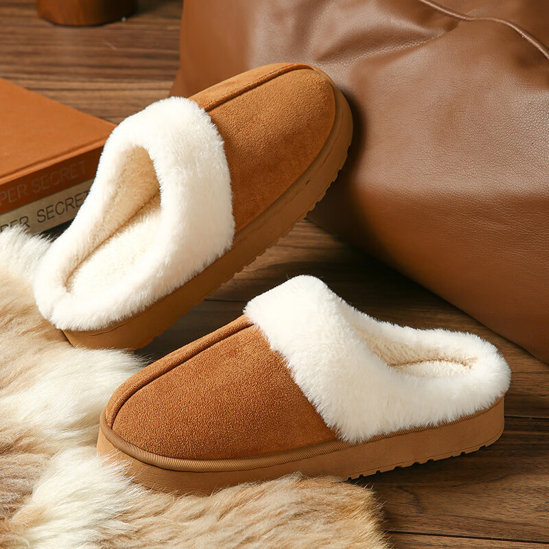 洁丽雅(grace)毛绒拖鞋女士冬季室内居家情侣款厚底防滑加绒保暖棉拖 A+升级款【加绒加厚棕色】 38-39 适合【37-38】