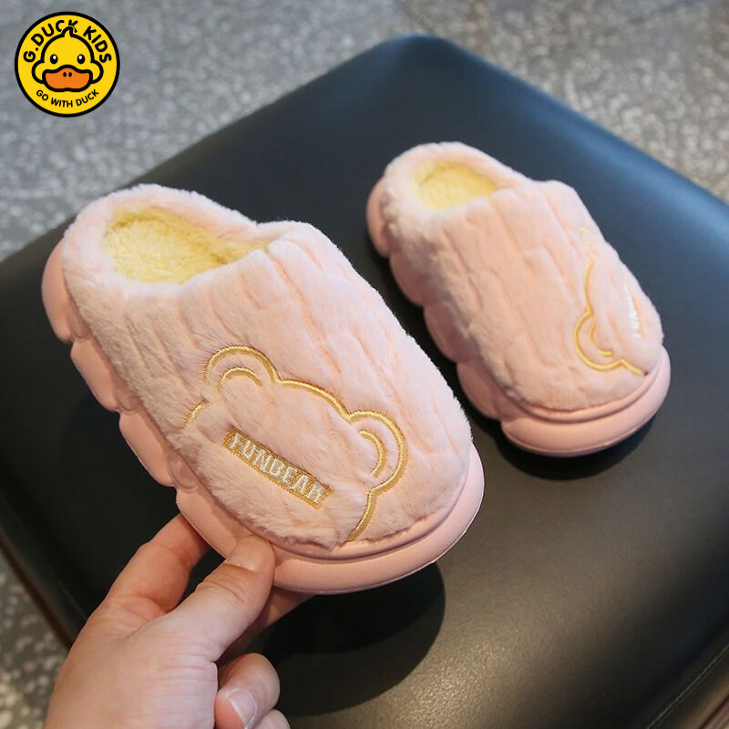 G.DUCKKIDS小黄鸭2025冬季新款儿童棉拖鞋男女童室内家用中大童卡通毛毛棉拖 粉红色 升级加厚 30 -31码内长18.5cm