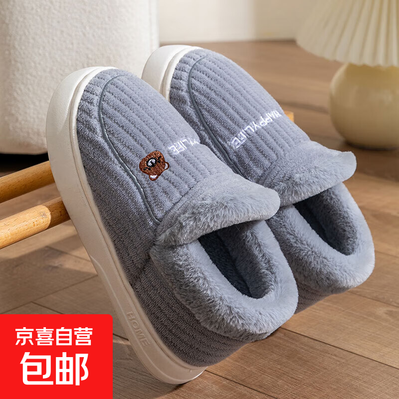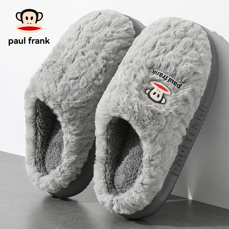大嘴猴棉拖鞋男款2025新款秋冬季室内家居防滑厚底毛绒保暖棉拖女 灰色 【官方正品】 42 -43【标准尺码内长26cm】