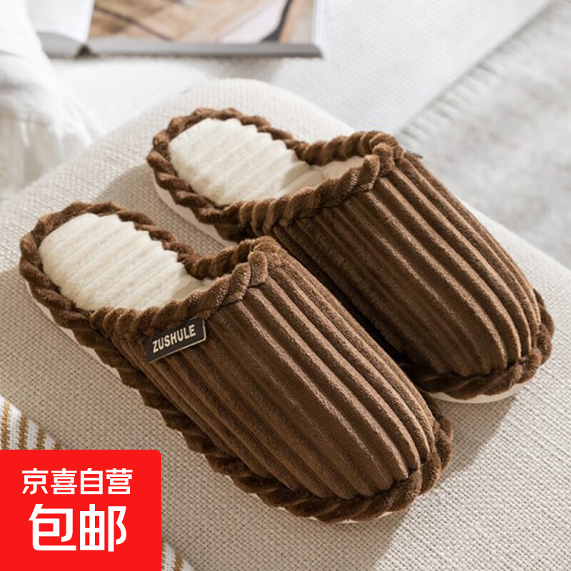 棉拖鞋男春四季家居灯芯绒室内防滑防臭软底家用大童木地板拖鞋女 咖啡 42 -43【适合41-42】