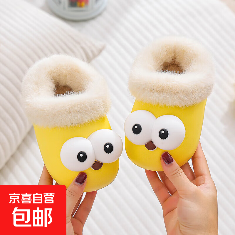 冬季宝宝棉拖鞋大眼可爱中小童室内家居防滑男童女童加厚保暖棉鞋 黄色-大眼 14 (20-21) 码内长14cm/脚长13