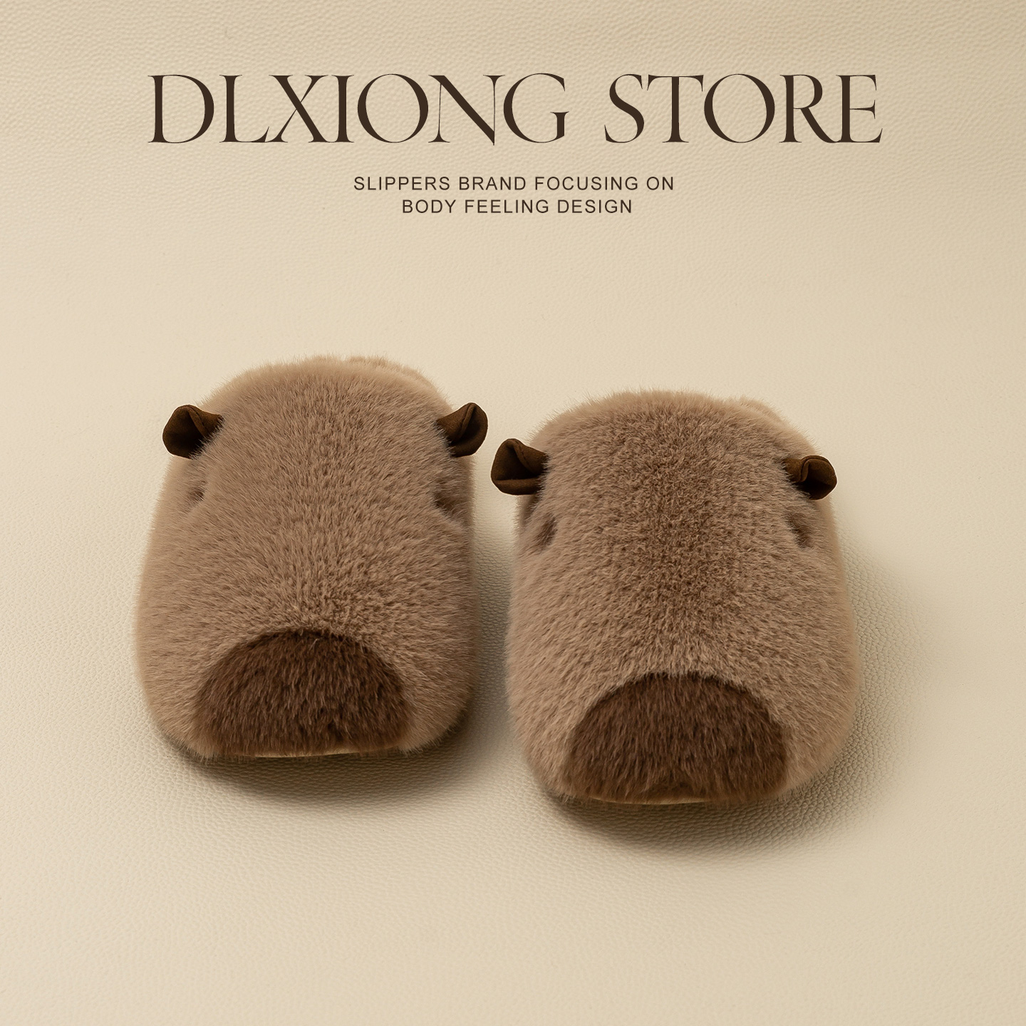 秋冬季男士卡皮巴拉棉拖鞋居家用加绒保暖女室内地板厚底防滑耐磨